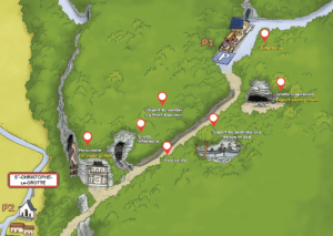 - Des escaliers se trouvent aux entrées et sorties des grottes.